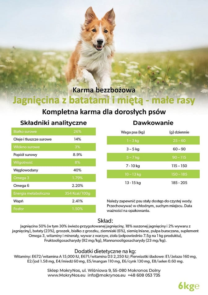 W składzie naszej monoproteinowej karmy znajduje się aż 50% jagnięciny, w tym 30% świeżo przygotowanej jagnięciny, 18% suszonej jagnięciny oraz 2% wywaru z jagnięciny, co czyni ją doskonałym źródłem wysokiej jakości białka. Formuła ta pomaga skutecznie kontrolować reakcje alergiczne oraz wspiera zdrowie skóry i układu pokarmowego Twojego pupila. Jeśli poszukujesz idealnej karmy dla swojego buldożka, maltańczyka czy innego małego psa, nasza karma dla psa alergika małych ras spełni oczekiwania Twojego pupila, oferując zdrową i smaczną propozycję żywieniową.