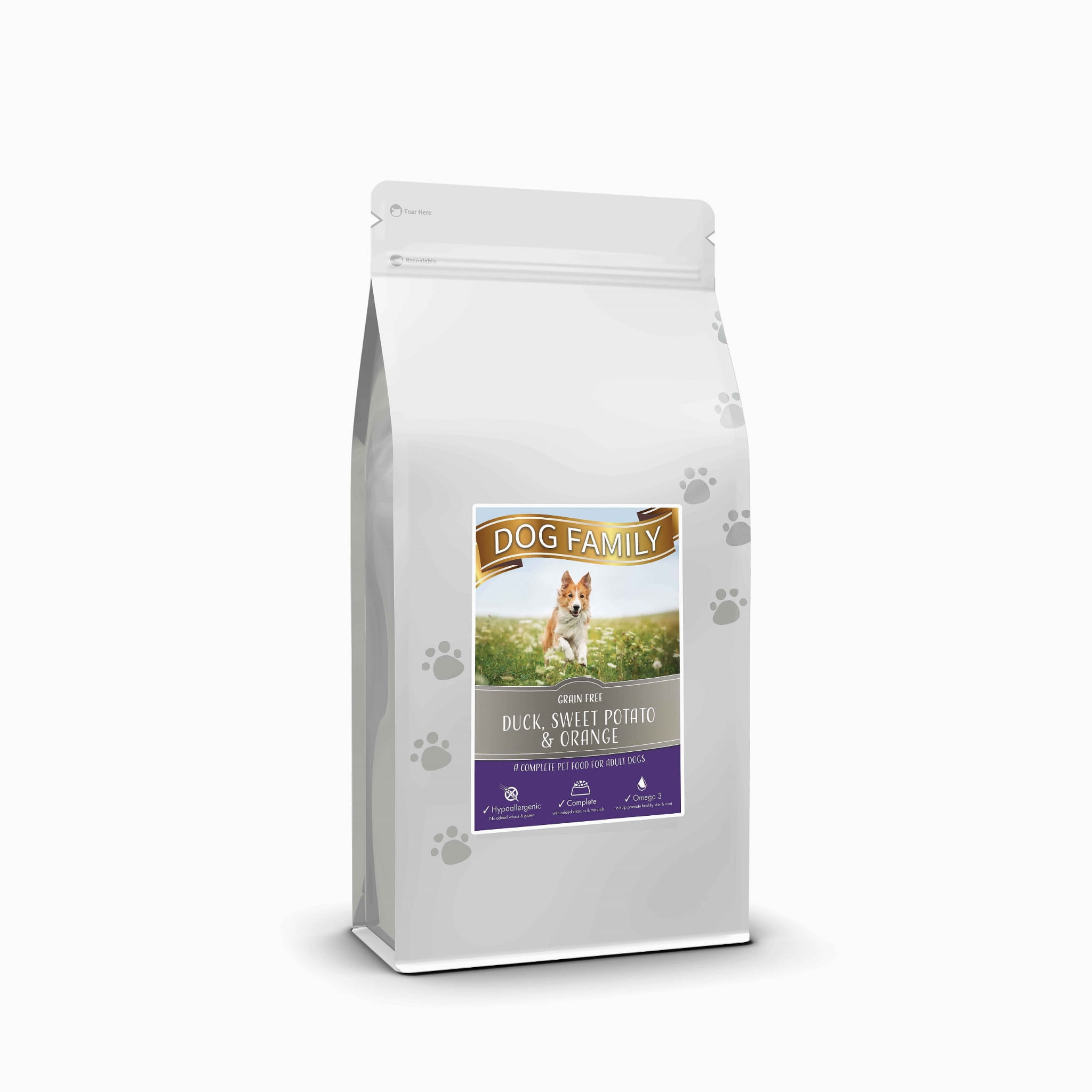 Ta wyjątkowa karma monoproteinowa dla dorosłych psów, oparta wyłącznie na mięsie kaczki to doskonała propozycja dla czworonogów wszystkich ras, niezależnie od wieku i poziomu aktywności. Formuła bez kurczaka i tłuszczu z kurczaka, bez dodatku ryb ani olejów rybnych, jest idealnym wyborem dla psów alergików z nietolerancjami na inne mięsa, z wrażliwym żołądkiem oraz problemami jelitowymi. Kaczka sprawdza się równie dobrze, jak hipoalergiczna karma z jagnięciną, lecz dla wielu psów jest bardziej atrakcyjna smakowo. Dzięki podobnej, hipoalergicznej recepturze, nasza monoproteinowa karma dla psa alergika może być stosowana zamiennie z innymi bezzbożowymi karmami Dog Family z jednym źródłem białka.